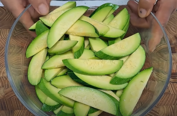 먼저, 애호박을 깨끗이 씻어 얇게 썰어주세요.