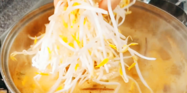 끓어오르기 시작하면 숙주나물을 추가하고, 다진 마늘을 넣어 풍미를 더해줍니다.